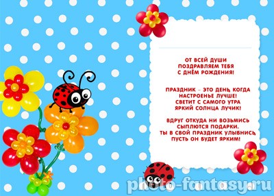 Открытка «С Днем рождения» из Набора на День рождения №3 с Божьей коровкой приятно удивит и порадует именинника и всех гостей. Создайте онлайн замечательную открытку с фотографиями виновника торжества! Согласитесь, подарить самую оригинальную и уникальную поздравительную открытку – это здорово. Сделайте ваше поздравление незабываемым! Красивые рамки для фото ко Дню рождения помогут вам в этом. Фоторамки онлайн – обрадуйте близких приятной неожиданностью!