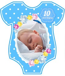 Оригинальная гирлянда для мальчика, сделанная из флажков в форме детского боди для фотографий Вашего сыночка с рождения до года. Фотографии малыша располагаются в крупных рамочках с цветами с указанием всех месяцев за первый год жизни.