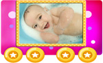 Синий паровозик с вагончиками с фотографиями Вашего малыша с рождения до 1 годика (или любой другой период жизни).
